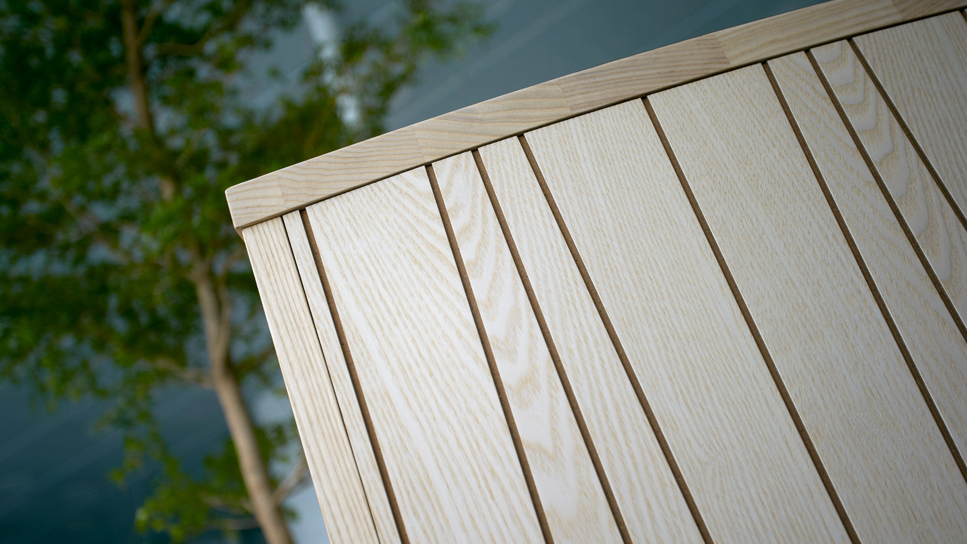 Fakta: Coffee/Sideboard i lounge, sideboard med bagageförvaring, self-incheck-bord (med träd) i receptionen, internetbord i paviljong, bord i lounge, orangeri, coffee area och matsal, höga teamtable-bord och konferensbord, sittmöbler i paviljong, talarpulpet i auditorium.Övervägande inredning tillverkat i ask med svagt vitpigmenterad klarlack.