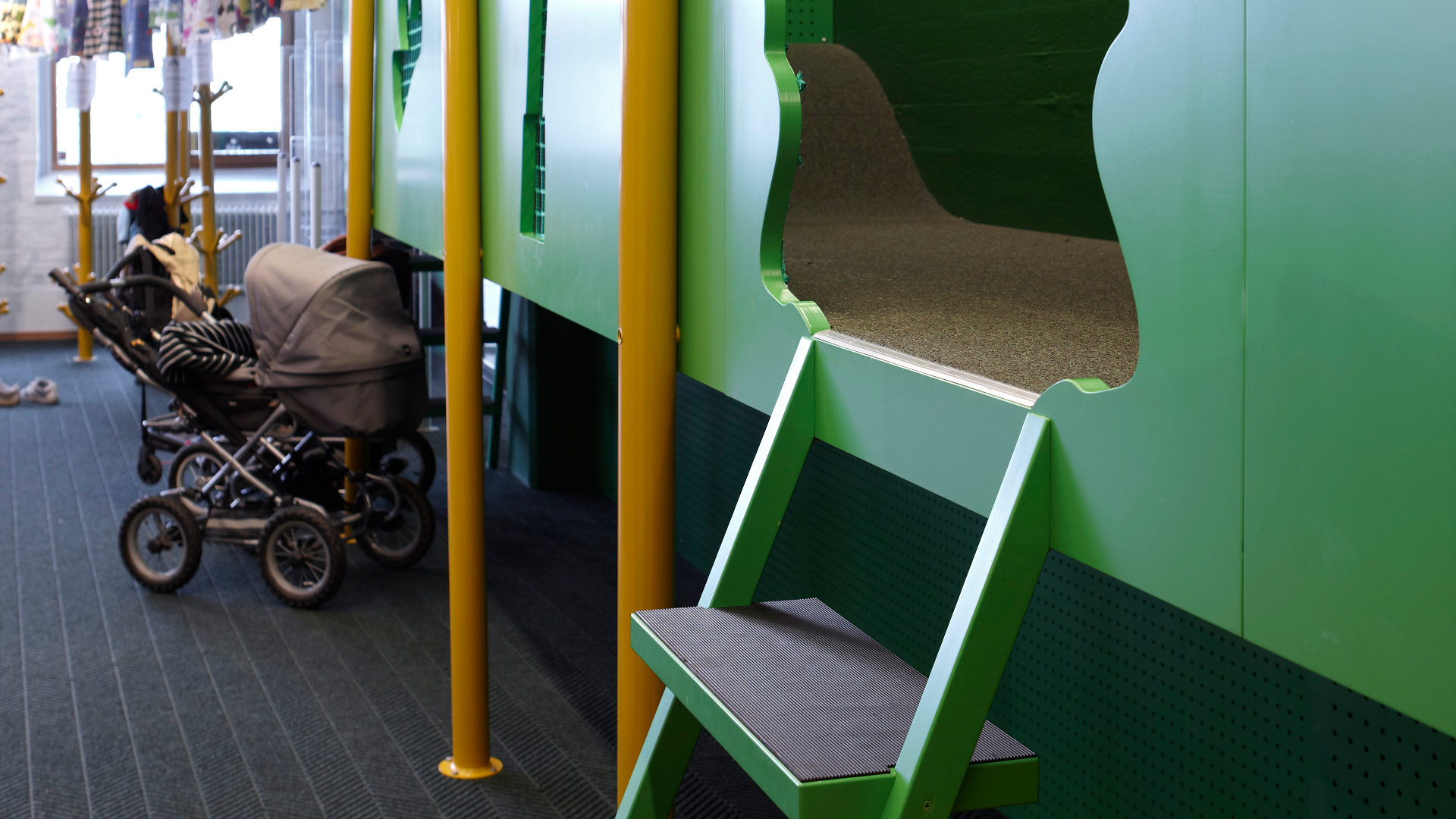 Fakta: All fast och lös inredning som klädstammar, djungelklätterloft, läslampa, djungelvägg, studiehörna etc.