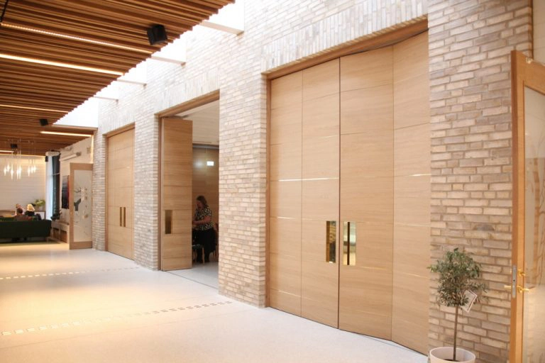 Av Pia Hansson | Publicerat 22 september, 2016Amhults kyrka, där C&D Snickeri har varit med och tillverkat vikdörrar i större format, bokhyllor till entrén och kyrksalen, serveringsluckor samt en “myshörna” är med och tävlar i internationella tävlingen World Architecture Festival i Berlin. Snickerierna är utförda i ek och har dekorerats med mässingslister och mässingshandtag som är lokalt tillverkade av AM-Teknik i Falköping.