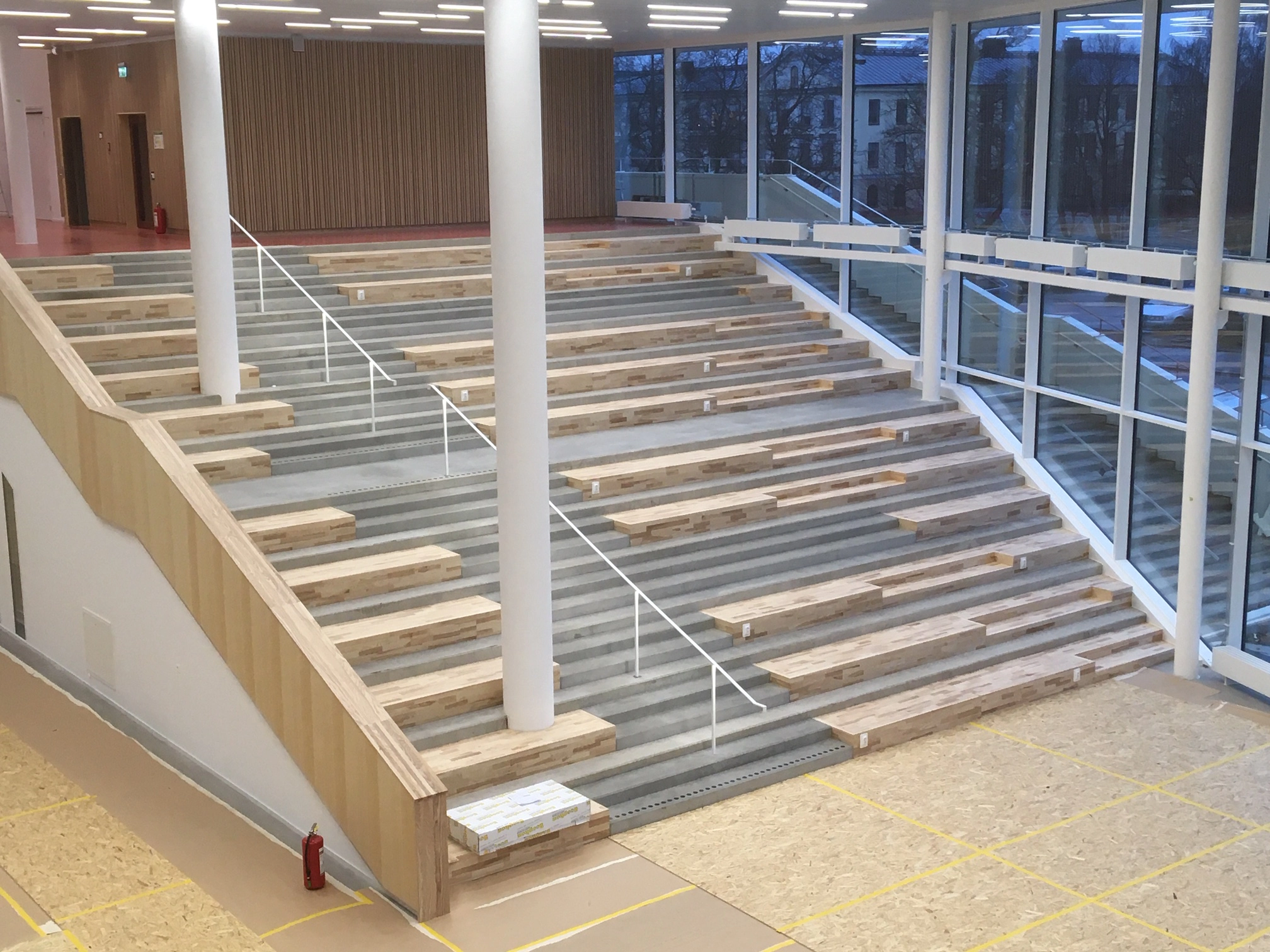 Nyligen har C&D Snickeri avslutat ett montage på detta campus av gradänger och handledare i ask.