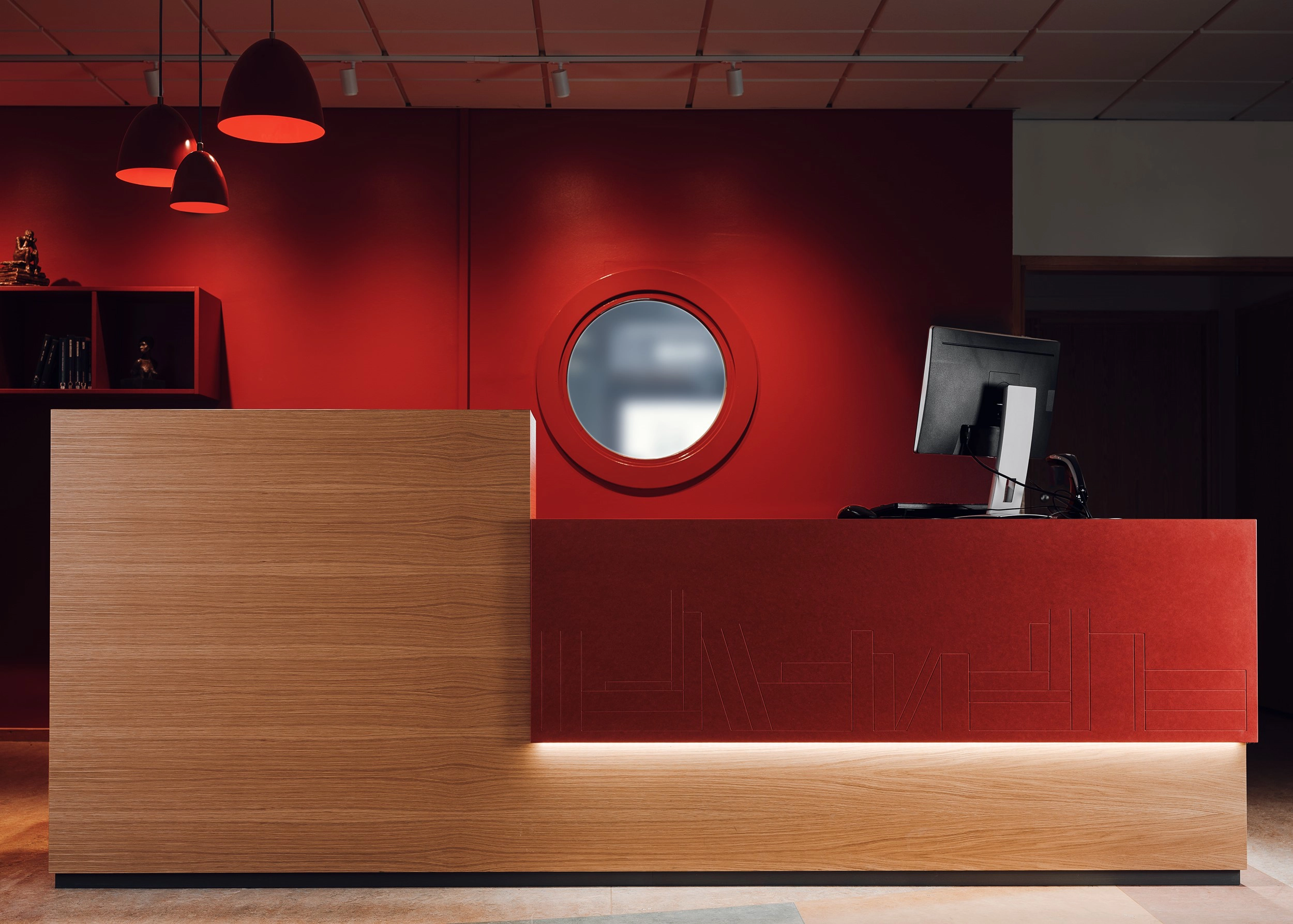 Weronica Darius, Arkoform AB i Falköping har stått för formgivningen av miljön och den nytillverkade receptionsdisken har ett specialritat bokmönster som frästes in i diskens rörliga del. Receptionen är tillverkad av oljad, röd Valchromat och ekfanerad mdf och där den integrerade ledbelysningen skapar fin känsla av ekfaneret.