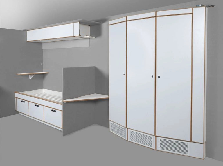 Av Elin Lans | Publicerat 17 mars, 2015Allt oftare sker leveranser från C&D Snickeri till offshoreindustrin. Nyligen gick ett antal inredningar iväg till en plattform på den norska kontinentalsockeln. Inredningarna är typiska för offshoreindustrin där brandsäkerhet, vikt och funktion över lång tid är avgörande. Inredningarna i detta fall är tillverkade i ett lättviktsmaterial bestående av en kärna med aluminium i så kallat honeycomb som laminerats i brandklassat material. Typiskt för inredningarna är de många olika funktionerna i samma möbel – allt för att utnyttja plattformens sparsamma areal.