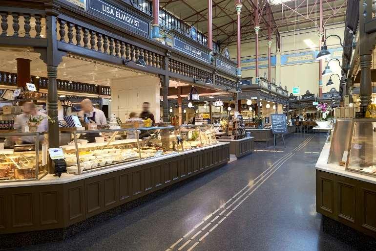 Av Pia Hansson | Publicerat 21 april, 2020Östermalms Saluhall är en av Stockholms stads vackraste tegelbyggnader från sent 1800-tal. Det var 2012 som Stockholms stad fattade beslutet att Saluhallen skulle renoveras. Saluhallen är kulturminnesskyddad vilket innebär att Stockholms Stadsmuseum varit noga med att så mycket som möjligt från originalbyggnaden bevarats. Den stjärnformade planritningen från 1888 har därför återskapats och man har behållit originaldetaljer i form av färger, målningar och snickerier. Östermalms Saluhall har genomgått den mest omfattande renoveringen på 130 år och har fått tillbaka sin forna glans och utvecklats till en modern och hållbar handelsplats.