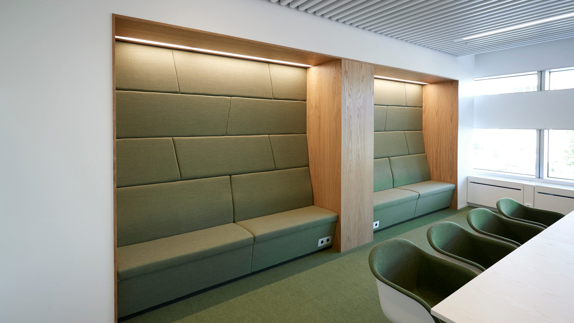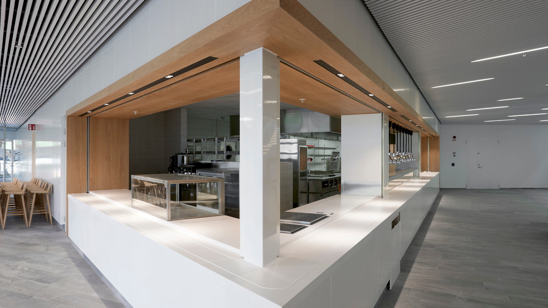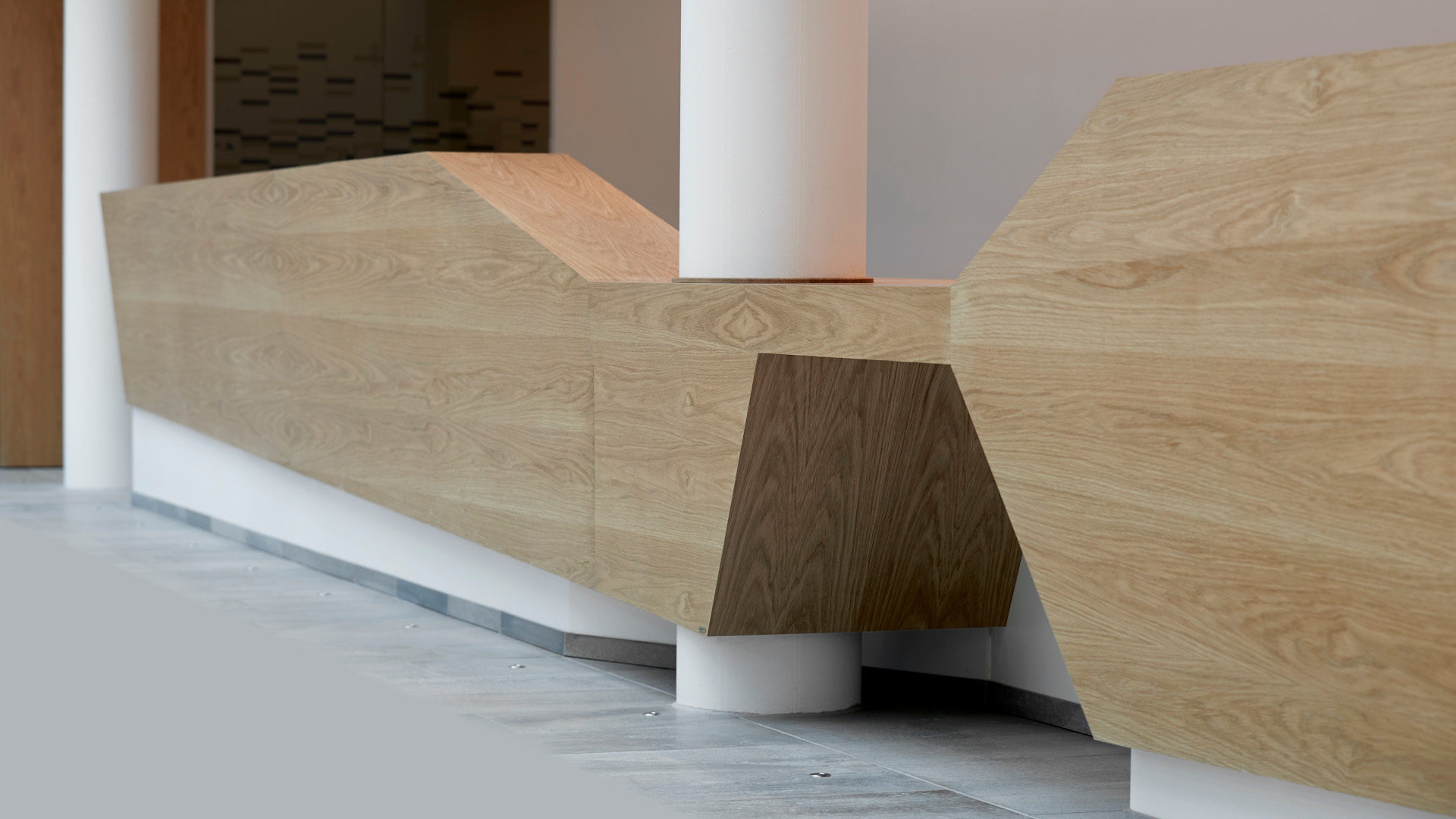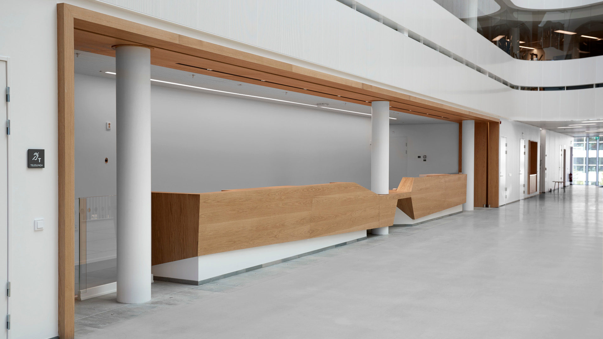 C&D Snickeri har tillverkat en 12 meter lång receptionsdisk i planskuren vitek i kombination med vit Corian. Tillverkningen var en rejäl utmaning då ytorna möter varandra som fasetter, och för att kunna visualisera hur effektfullt slutresultatet skulle bli, gjordes först ett fullskaleprov som vann kundens gillande. Bland övrig inredning signerad C&D Snickeri, märks ramar i planskuren vitek samt sittplansteg i ek i stentrappan.